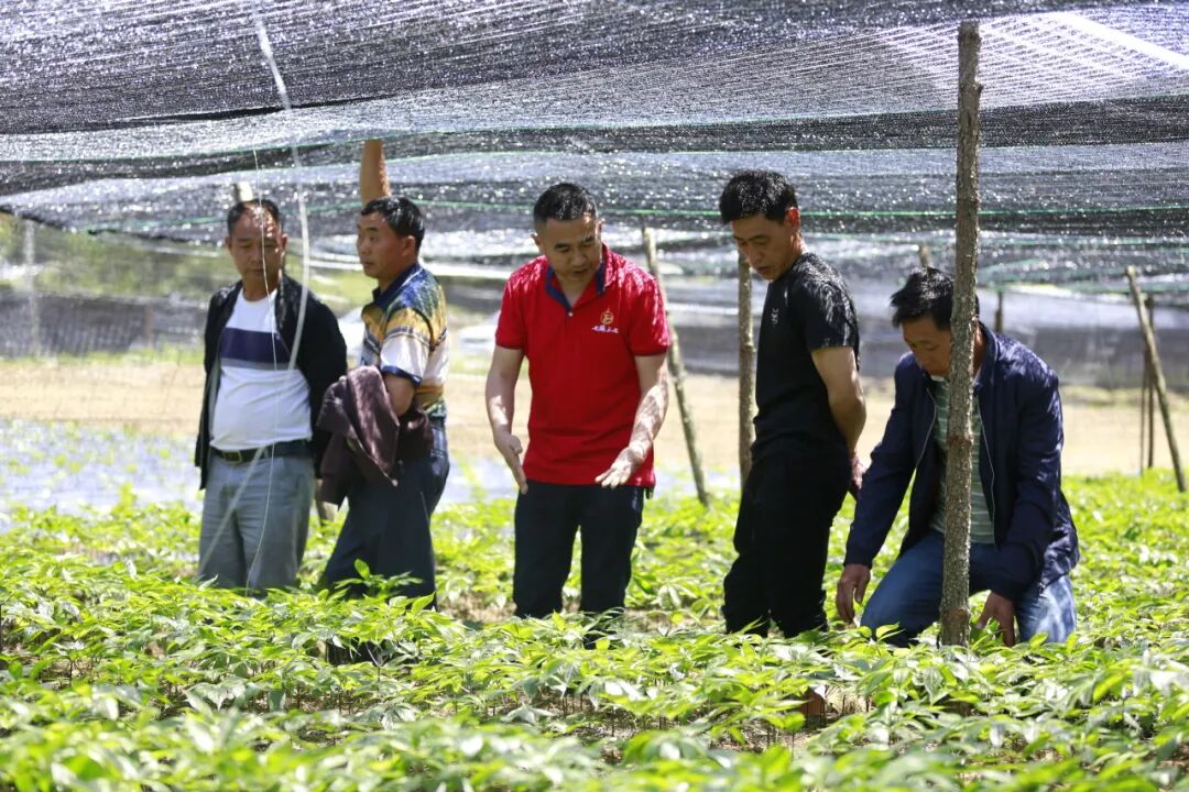 图为文山市乡村振兴代表工作站代表在指导农户栽种三七